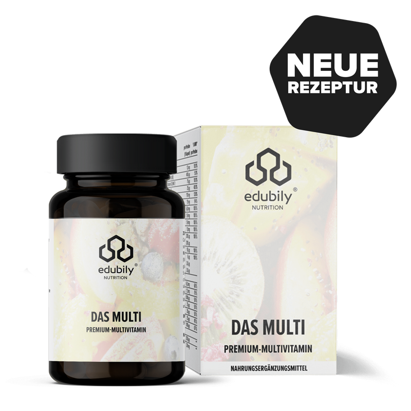 Das Multi ist das edubily®-Flaggschiff – die Nummer 1 für Tausende unserer Kunden. Es ist ein Multivitamin-Präparat, das ein vollständiges Nährstoffspektrum mit den besten Rohstoffen und entsprechend in bester Bioverfügbarkeit liefert. Das Produkt wird konstant weiterentwickelt und die Rezepturen an neue wissenschaftliche Erkenntnisse angepasst.